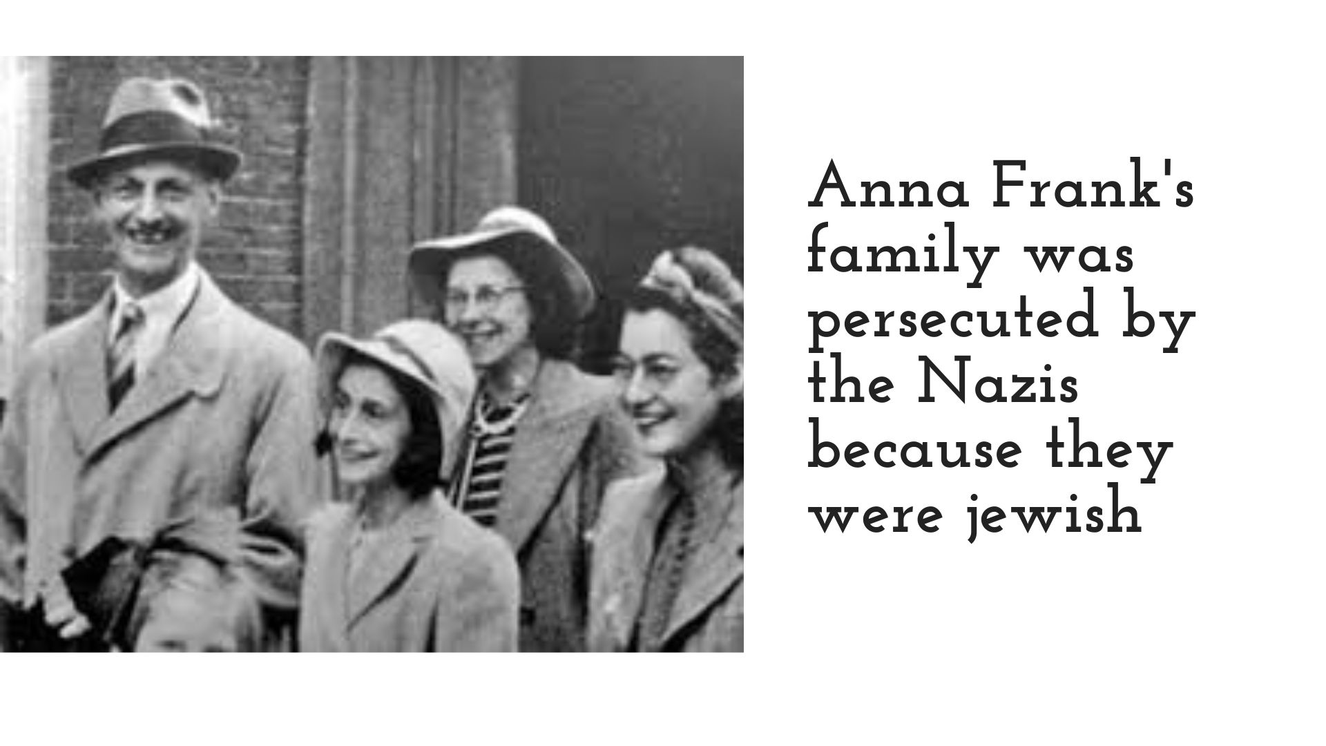 Anne was a young girl, She was born in 1929 in Germany and she was a Jewish girl. Her family was persecuted by the Nazis so they took refuge in Amsterdam. The Nazis were cruel soldiers, they killed six million people. It was a terrible tragedy.